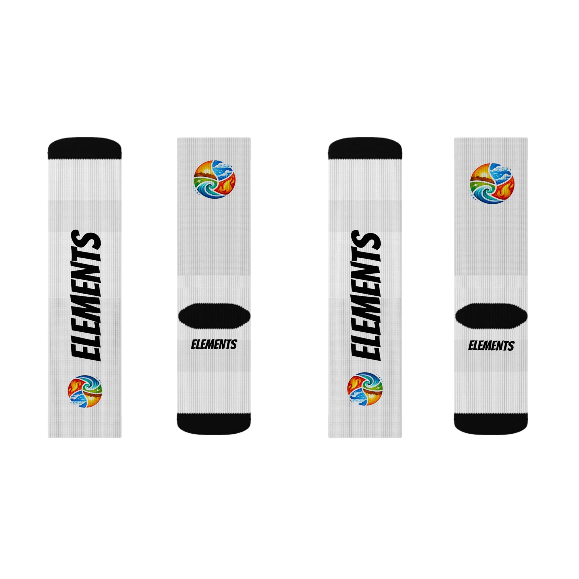 These 'ELEMENTS' crew-length sublimation socks bring cozy warmth and playful color to everyday steps. Soft fleece lines the footbed for a plush feel against skin, while cushioned bottoms add gentle shock absorption for long wear. The design flows edge-to-edge with all-over print so your artwork appears continuous up the calf, and ribbed tubes hold the sock comfortably in place. Lightweight stretch from polyester and spandex keeps the fit snug without binding. Subtle black toe and heel panels add contrast while the printed logo accents give a splash of personality. Expect slight color variation at side seams due to the flat sublimation process—part of their handcrafted charm.
