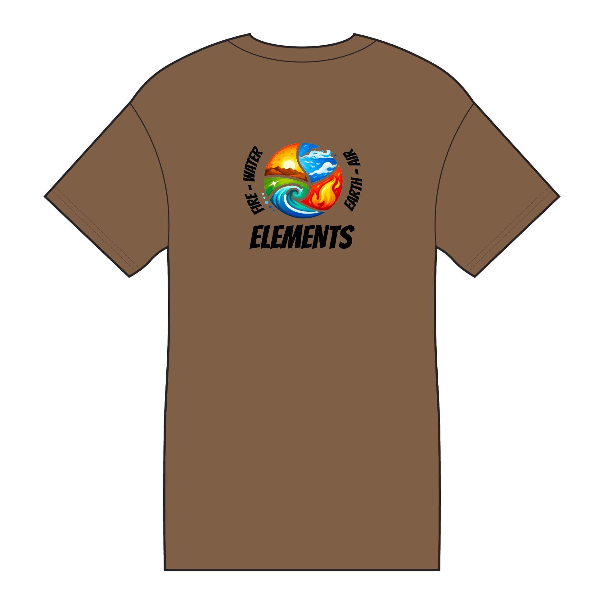 This soft, breathable cotton tee carries a bold, colorful 'ELEMENTS' emblem, celebrating earth’s earthy tone colours. The vibrant front chest mark and larger back artwork use crisp, high-contrast printing that really stands out. Lightweight and roomy, the shirt feels airy on warm days and layers neatly under a jacket on cool evenings. It’s built to hold its shape, ribbed crew neck and reinforced seam, while the tear-away tag keeps the back comfortable. Wear it to show a love of nature, surfing, hiking, or just to bring bright, energetic art into everyday outfits.